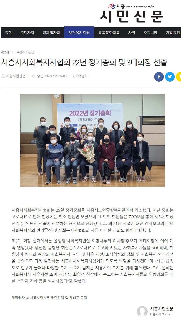 [ÄÃóÀνÃÈï] ½ÃÈï½Ã»çȸº¹Áö»çÇùȸ, 22³â Á¤±âÃÑȸ ¹× À±Çü¿µ 3´ëȸÀå ¼±Ãâ