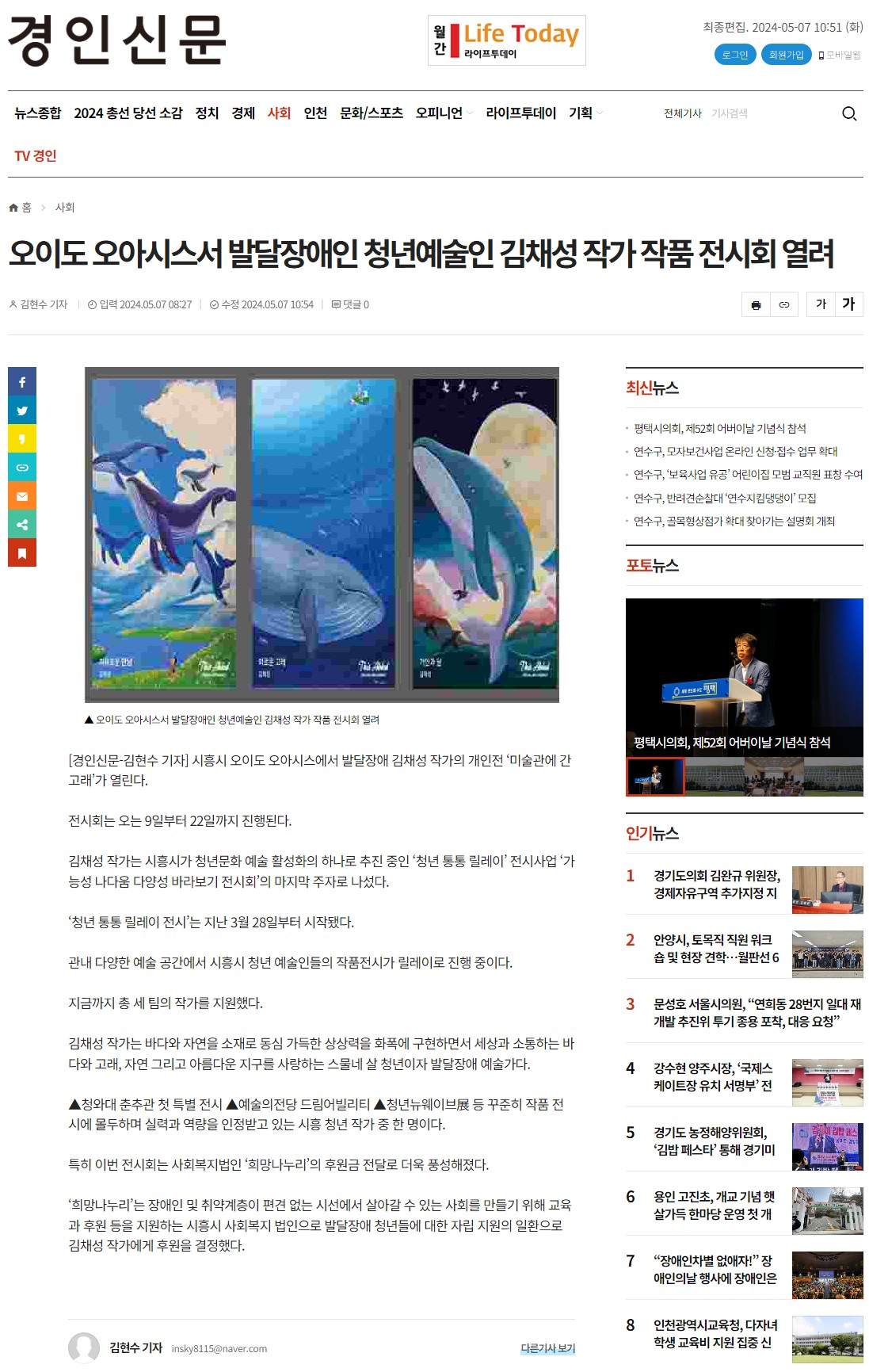 [¾È³çÀϺ¸] ½ÃÈï½Ã, ¿ÀÀ̵µ ¿À¾Æ½Ã½º¼ ¹ß´ÞÀå¾ÖÀΠû³â¿¹¼úÀÎ ±è伺 ÀÛ°¡ ÀÛǰ Àü½Ãȸ ¿·Á